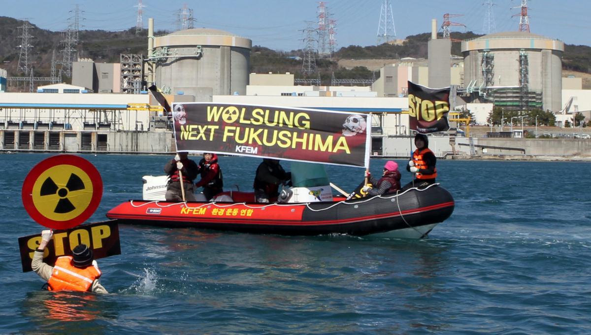 2011-03-23. Гёонжу мужийн Волсунгийн атомын станцын дэргэд шинэ реактор барихыг эсэргүүцсэн байгал хамгаалагчид, Өмнөд Солонгос.