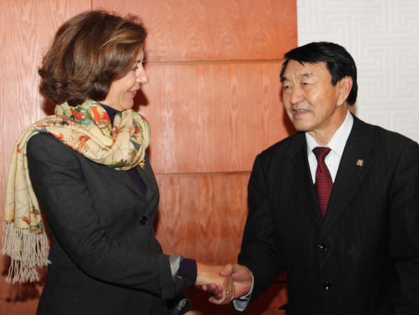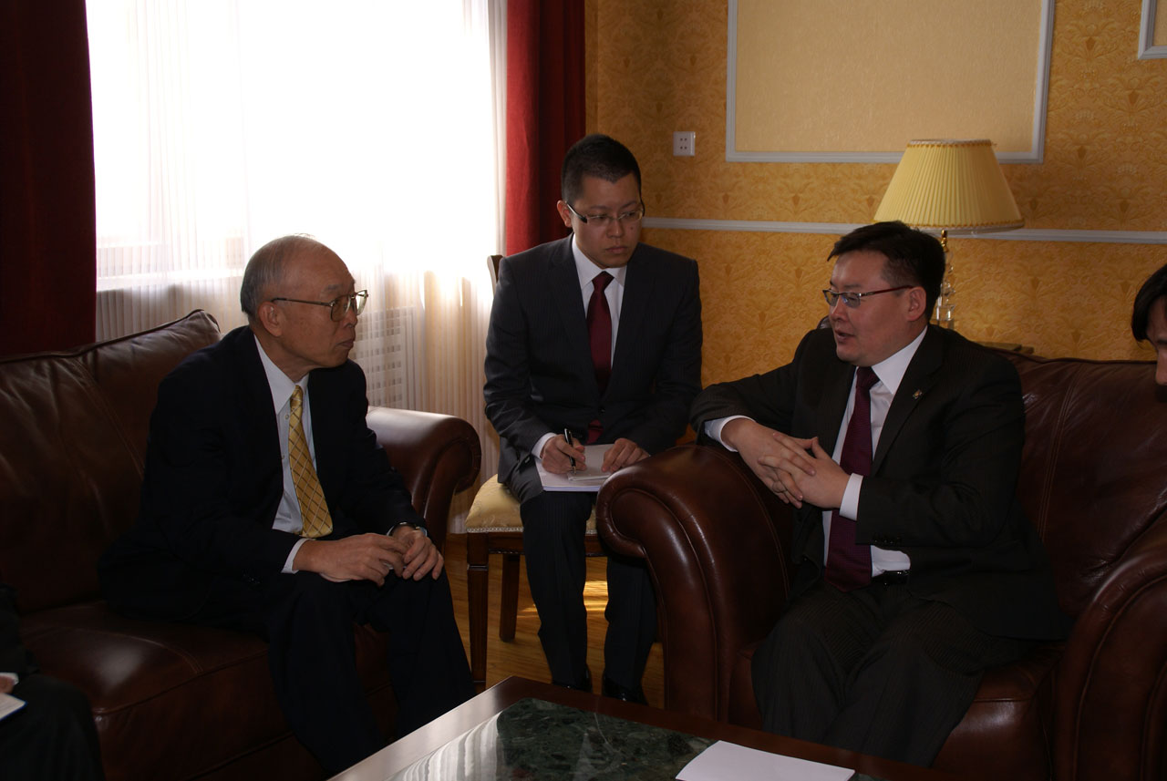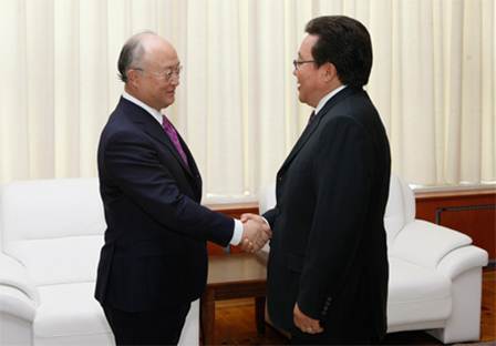 Манай оронд айлчилж буй Олон Улсын Атомын Агентлагын ерөнхий захирал Юкия Аманотой уулзаж байгаа нь. 2010 оны 11 сар.