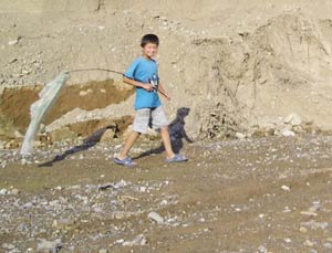Ураны хаягдлын дундуур тахиагаа тууж буй хүү