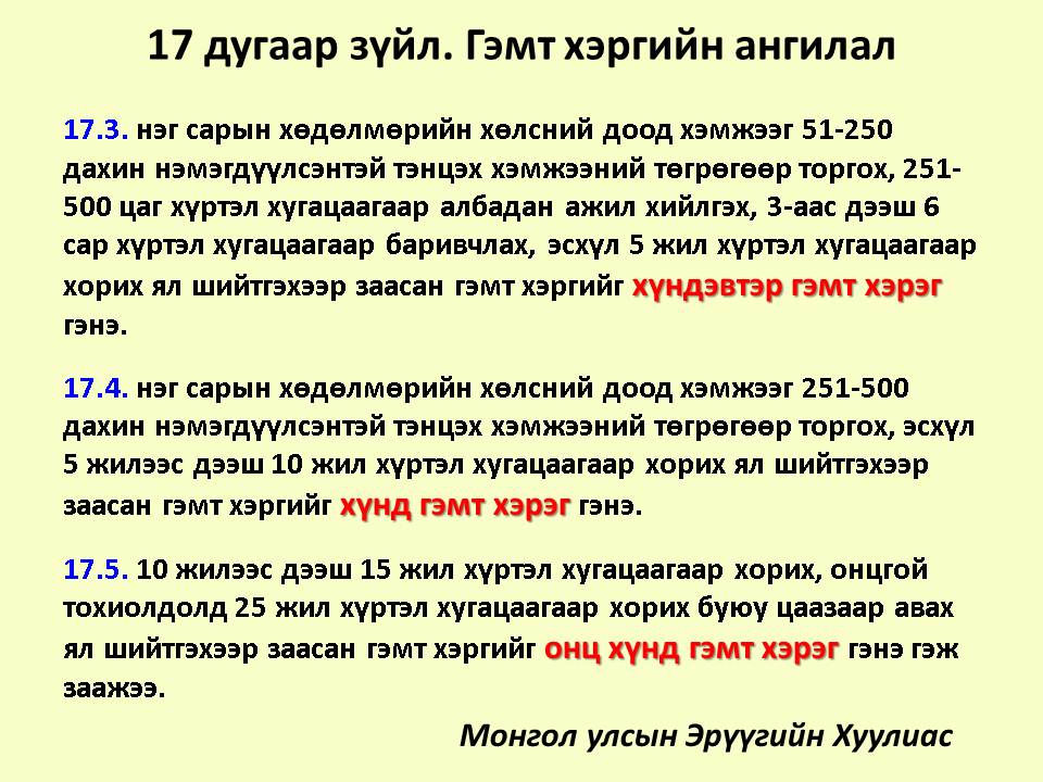 Тэгвэл Эрүүгийн хууль энэ талаар юу гэж өгүүлнэ вэ?