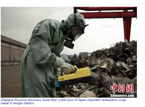 Нингбо хортын хаягдал төмөр боловсруулагч компанийн оруулж ирсэн хаягдал төмрөн дэх цацрагийн хэмжээ нь Хятадын үндэсний стандартаас даруй 2 дахин өндөр байсан бөгөөд хүн болон байгаль орчинд хортойг нь Нинго боомтын гаалийн ажилтнууд тогтоожээ.