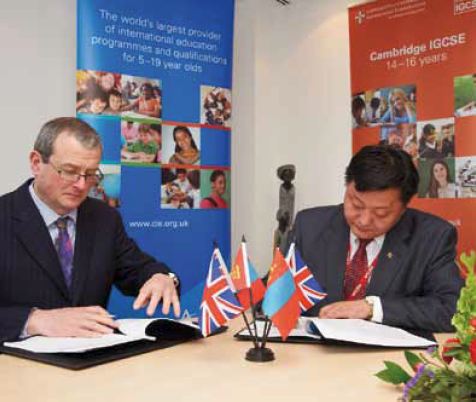 2012-04-13 гэрээнд Гарын үсэг зурж буй нь. Cambridge Assessment Группын тэргүүн Саймон Лебус, Ё. Отгонбаяр