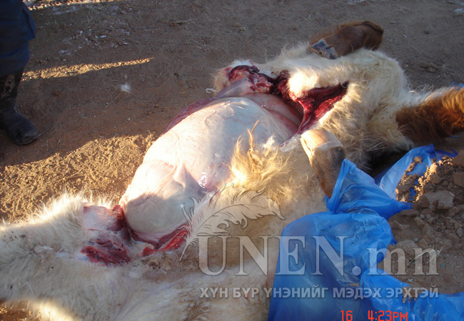 Цугларсан малчид үхэр, бяруу үхээд зогсохгүй, сүүлийн үед ямаа олноороо халуурч үхэж байгаа тухай халаглан ярьцгаав. Үхсэн ямааны уушиг бүхэлдээ хар толбо үүсч, хавантсан шинжтэй байх. Түүнчлэн бараг л хугацаандаа төллөж буй хурга, ишиг үсгүй, амьгүй төрөх байдал газар авсан гэх /Үхсэн үсгүй ишиг үзүүлэв/. Бөгсөн бие нь хөгжилгүй байнгын хэвтэрт байдаг ишиг, ботготой ч таарлаа.