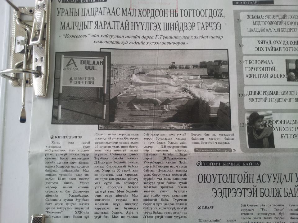 Posted: 2013/03/25 Filed under: Газар нутаг, Дорноговь Улаанбадрах, Уран ба АЦС-ын аюул, Хүн ард, эрүүл мэнд | Tags: Арева, Ноцтой, Хариуцлага, шударга ёс 7 Comments2013-3-25 ны “Үнэн” сонинд гарсан нийтлэлийг танд бүрэн эхээр нь хүргэж байна.