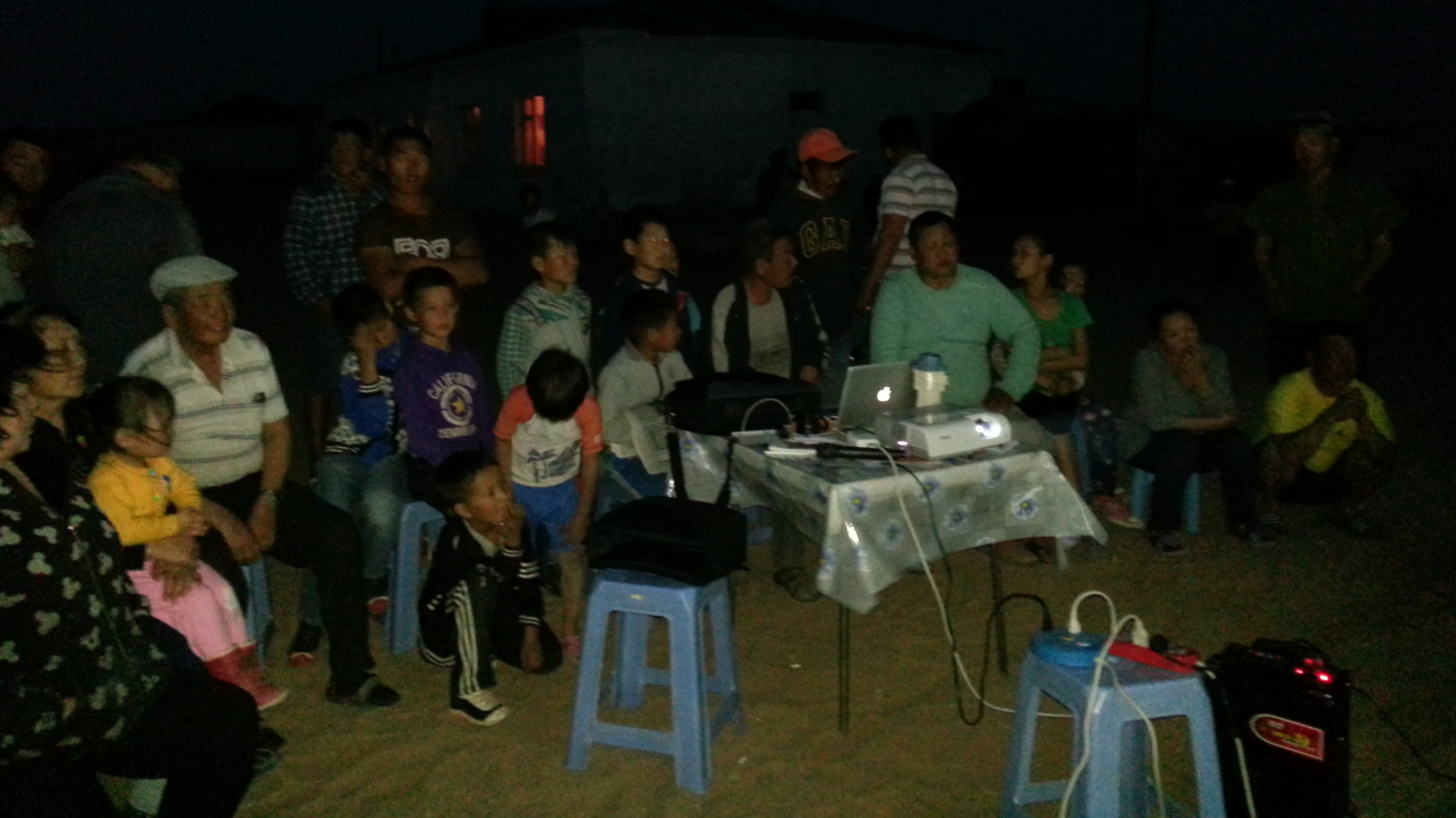 Буянт ах ахлах, бага сургуулиудаар орж ганц нэг багш нартай уулзаж “Голомт” цөмийн эсрэг хөдөлгөөнийхний гаргасан сонинг тараана. Орой ирсэн хүмүүст бүгдэд нь сонингоо тараав. Манай хэд мэдээлэл ѳгѳх, сонин тараахдаа их дуртай хэзээний л гараад явсан хүнтэй уулзсан хүнд сонингоо тараасан явдаг. Манайхны цусанд нь эгэл хүмүүст тус болчих юмсан гэсэн чин хүсэл оргилж байдаг тэр хэмжээгээрээ ѳѳрсдѳѳ сэтгэл нь өег хангалуун явдаг юм шигээ. Орой болж цагаан хоолойгоор сум дундуур давхиж иргэдэд зар түгээснээр хүүхэд хѳгшид нийлсэн 30-аад хүн цугларахад уран олборлолтын хор хөнөөлийн тухай кино үзүүлж, мэдээлэл түгээлээ. Кино үзэнгээ шүүрс алдан зүрхээрээ мэдэрч байгаа иргэдийг харахад ѳѳрийн эрхгүй нэгийг бодно. Уран олборлохоос үүдэлтэй аюул хар толгой дээр нь дуртай ч дургүй нэгэнт ирдэгээ ирээд эд малын гарз учруулаад бас бие сэтгэлийн дарамтанд оруулаад байгаа энэ үед ураны хор хѳнѳѳлийн тухай кино мэдээлэл юутай ойрхон тусч байгааг ойлгоход тийм ч хэцүү биш. Тэд ѳѳрсдийгѳѳ бодохоос илүү ирээдүй үеийнхэн, үр удамдаа түгшиж, яадаг болоо гэж шүүрс алдаж байгаа нь тэр.