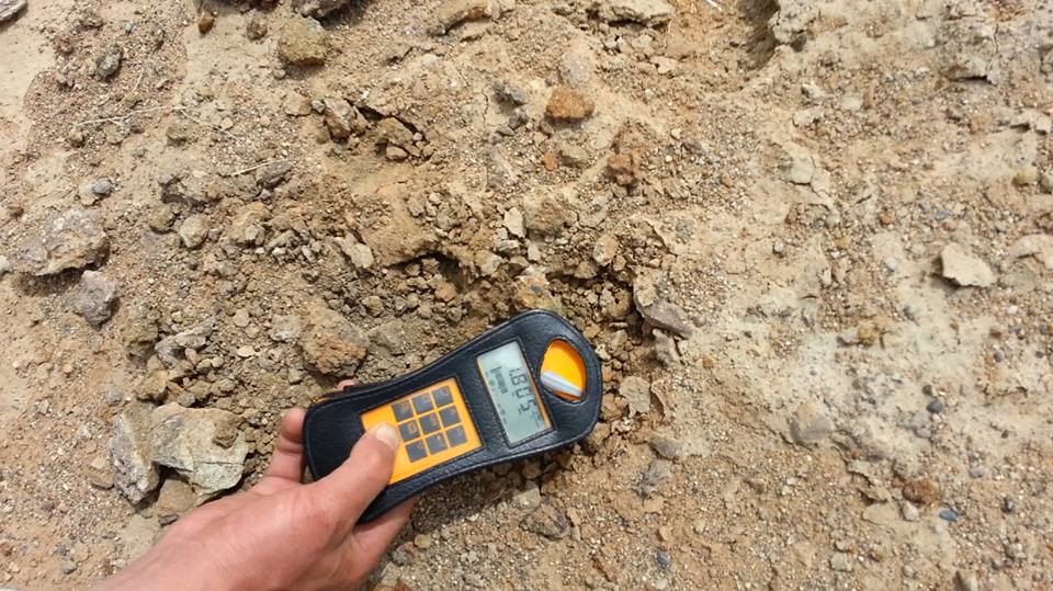 Бид цааш хѳдѳлтѳл Ноок ах “Энд ойрхон овоолго бий хуучин оросын овоолго гэдэг тийшээ очьё” гэлээ. Тэнд очиход 2 том хуучин шороон овоолго байна. Тэр нь олон жилийн ѳмнѳх овоолго гэдэг нь илт. Харин тэрүүхэн зайд шинэхэн хаясан болов уу гэмээр тусдаа шавар овоолго байна. Хуягаа бид 2 цацрагийн хэмжилт хийж эхэллээ. Ноок ахын заасан хуучин шороон овоон дээр гарч хэмжихэд цацраг хэвийн хэмжээтэй байлаа. Биднийг айж гайхшруулсан зүйл гэвэл тэр шинэвтэрхэн шавар шороонд цацрагийн хэмжээ хэвийнхээс 9 дахин өндөр байлаа. Бид 2 дахин дахин хэмжсэн. Цацрагтай шаврын эргэн тойронд малын мѳр хаа сайгүй тэр тусмаа тугалын мѳр тодоос тод. Бас саяхан бололтой ирээд буцсан машины мѳр байна. Ерѳнхий сайдын ажлын хэсгийнхэн энд бас ирээд явсан гэж Ноок ах хэллээ. Хамт яваа хүмүүсийн маань зарим нь эмээсэн үү яасан машиндаа ороод суучихсан. Тэд хэрэг бишдэж байгааг жинхэнээсээ ойлгосон байх. Бид цацрагтай газарт алхаж явна шүү дээ. Бид буцах гээд дуудтал Ганбаа ах нэг тийш алхаад явчихав. Араас нь очтол ѳрѳмдлѳгийн пайз байх бѳгѳѳд DL 374 гэсэн байлаа. Ингээд хуучин оросын овоолго гэдэг, DL 374 пайзтай ѳрѳмдлѳгийн талбай дээр цацрагийн хэмжээ хэвийн хэмжээнээс 9 дахин их болохыг тогтоолоо. Аревагийн цацрагийн бохирдолгүй гэсэн хаа байна, 98 сая тѳгрѳг үрсэн ажлын хэсгийн цацраггүй гэсэн дүгнэлт хаа байна. Ноок ахын хэлснээр Цөмийн Энергийн Газрын цацрагийн хэмжилтийн газрын дарга Манлайжавын ахалсан ажлын хэсгийнхэн Улаанбадрахад ирэхдээ цацраг хэмждэг багаж эвдэрсэн гээд хэмжээгүй гэж байлаа. Ийм хариуцлагагүй байж яаж цацрагийн түвшин хэвийн хэмжээнд, гүний ус хордooгүй гэж тэд мэдэж байгаа юм? Ийм хариуцлагагүй байж Аревагийн  үйл ажиллагаанаас болж мал үхээгүй гэж яаж хэлэх юм бэ? Ямар учраас харийн компанийг өмгөөлөн нутаг орон, ард иргэдээ мал сүрэгтэй нь золислохоос буцахгүй аашилна вэ?  Засгийн газарт ч, Аревад ч итгэнэ гэдэг хэцүүхэн гэдэг нь дэндүү ойлгомжтой биш үү.
