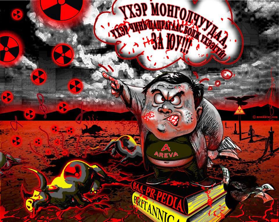 Posted: 2013/10/31 Filed under: Цөмийн хуйвалдаан | Tags: Ноцтой, Эрх баригчид 16 Comments2013 оны 10 сарын 26-ны бямба гариг. Энэ өдөр Монгол улсын түүхэнд мөнхөд хараар дурсагдах болно. Чухам энэ өдөр Монголын төрийн өмчит “Мон-Атом” компани Францын “Арева”, Японы “Мицубиши” корпорациудтай уран олборлож боловсруулах цөмийн гэрээнд гарын үсэг зурав. Ингэснээр Монгол улсад цацрагт идэвхит бодис олборлож, боловсруулан тээвэрлэх нь тодорхой боллoо. Энэ өдөр Монгол улс Олон Улсын Атомын Энергийн Агентлагaac санаачилсан “цөмийн түлшний иж бүрэн үйлчилгээ” гэгчийг үзүүлэхэд бэлнээ зарлан тунхаглаж, ирээдүй хойчдоо хорт цацраг, гаж удамшлыг өвлүүлэхээр улайран дайрсан эмгэнэлт өдөр гэж дурсагдах болно.