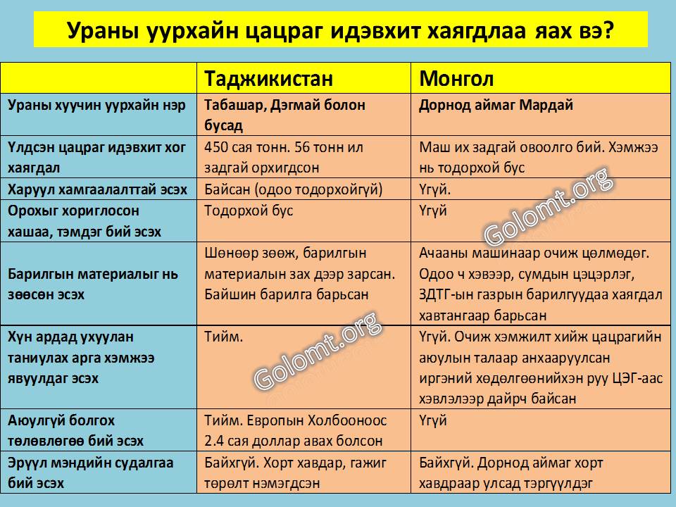 Тажикистан ба Монгол –ураны уурхайг тойрсон гачлант хувь заяа