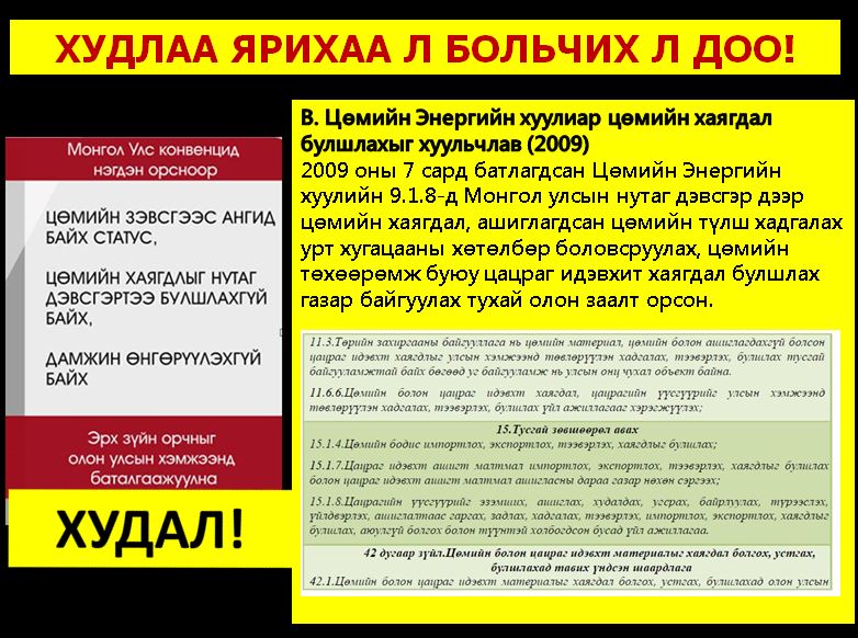 Монгол улсад зохицуулаад байх ашигласан цөмийн хаягдал бий билүү? Байхгүй. Тэгвэл хэнийхийг авах гэж ийм Конвенцид элсэнэ вэ?